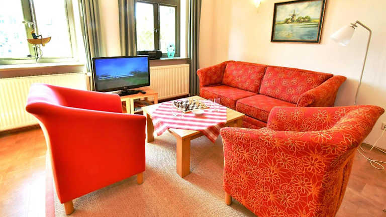 Das Ferienhaus Strandperlen Sanddornhof 7b (Typ VI) bietet Platz für bis zu 4 Personen. Es verfügt über 2 gemütliche Schlafzimmer, ein Wohnzimmer und eine gut ausgestattete Küche mit einem Kühlschrank und einem Backofen. Die Terrasse bietet einen schönen Blick auf den Garten und lädt zum Entspannen ein. Zur Ausstattung gehören auch Sat-TV und ein CD-Player für Ihre Unterhaltung. Kostenloses WLAN ist ebenfalls vorhanden.
