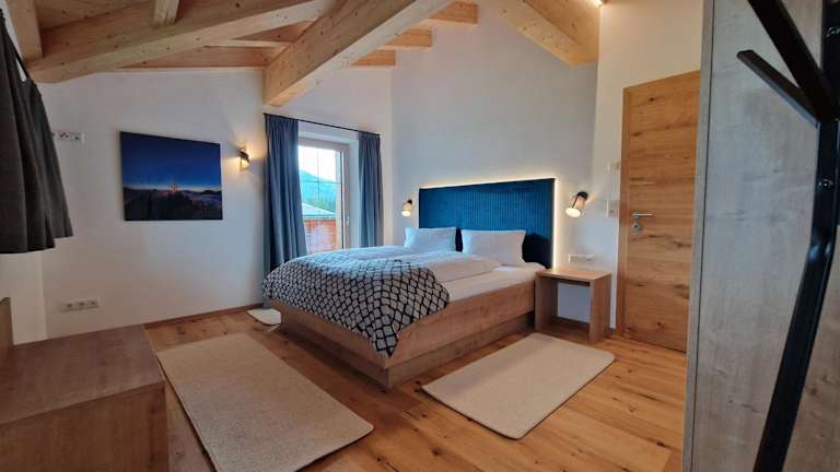 Die Ferienwohnung beinhaltet zwei Schlafzimmer, ein Badezimmer sowie eine voll ausgestattete Küche. Zur Ausstattung gehören Bettwäsche, Handtücher und ein Flachbild-TV. Darüber hinaus gibt es einen Balkon, der einen Blick auf die umliegenden Berge bietet.