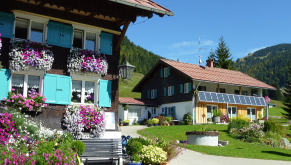 Wir liegen 1040 m hoch, eingebettet in die Kulturlandschaft. Lassen Sie sich verzaubern von den bunten Blumenwiesen und duftenden Kräuteroasen. Ausgangspunkt für Wanderungen.