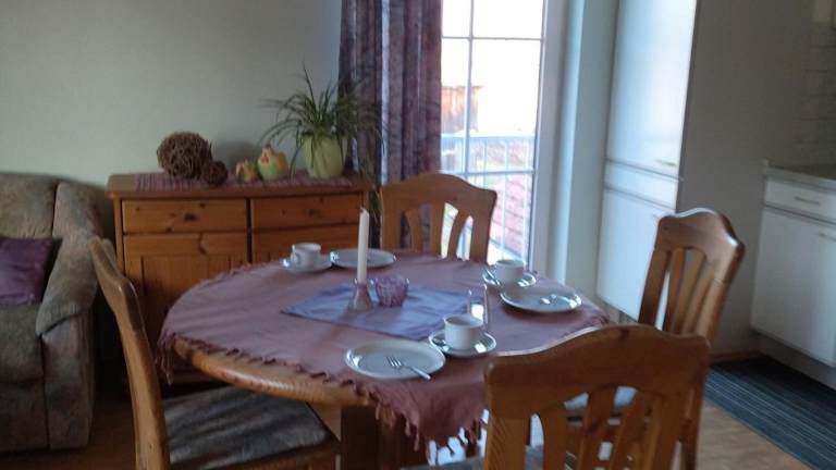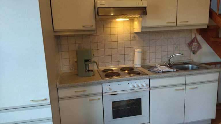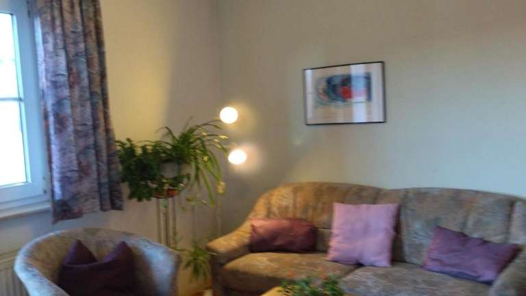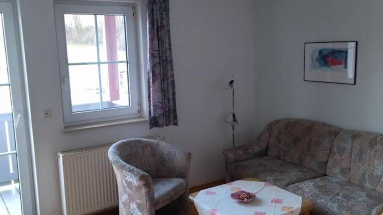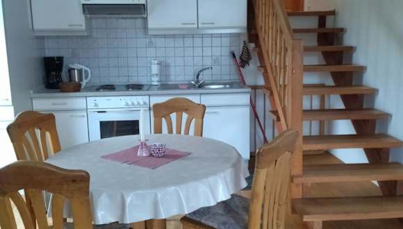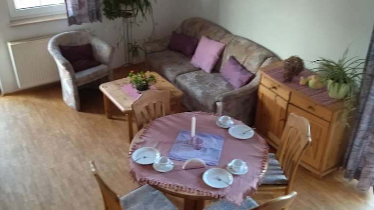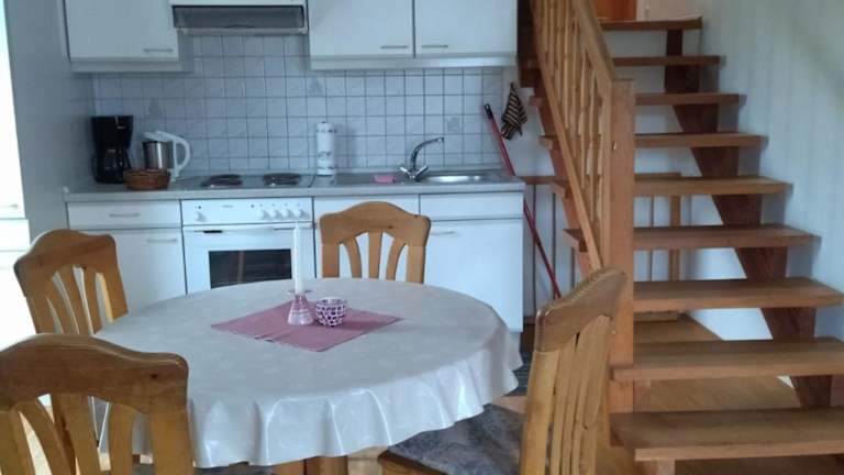 Die Unterkunft Ferienhof Alte Schmiede bietet zwei Schlafzimmer und ein Badezimmer mit Dusche. Zur Ausstattung gehört ein Sitzbereich sowie eine Küchenzeile, die mit einem Ofen versehen ist.