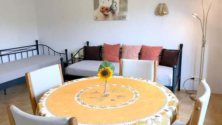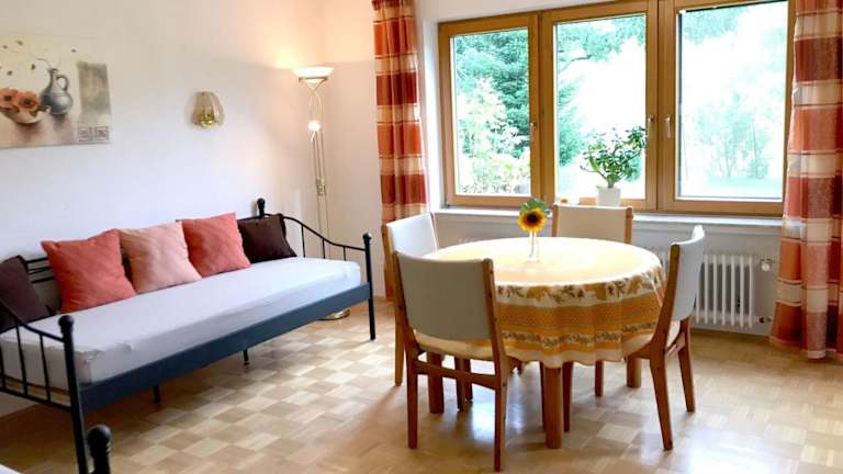 Der Ferienhof Biegger liegt in der malerischen Stadt Tettnang in Baden-Württemberg. Das Messegelände Friedrichshafen ist nur 12 km entfernt, was den Hof zu einer praktischen Unterkunft für Messebesucher macht. Die schöne Stadt Bregenz in Österreich ist ebenfalls leicht zu erreichen und liegt nur 32 km entfernt. Für Naturliebhaber bietet die Region viele Wandermöglichkeiten und die umliegenden Seen laden zum Baden und Entspannen ein. Der Flughafen Friedrichshafen ist nur 9 km entfernt und bietet eine gute Anbindung für internationale Gäste.
