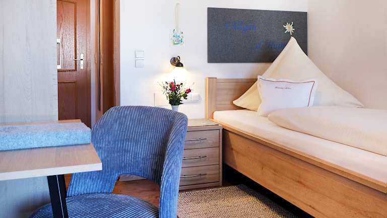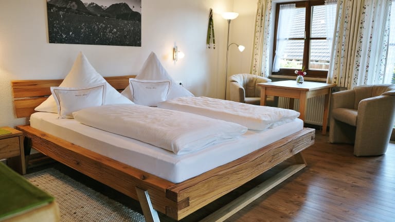 Unsere liebevoll ausgestatteten Doppel- und Einzelzimmer (jeweils 3-Sterne) befinden sich auf der 1. Etage unseres Bauernhauses. Alle Zimmer verfügen über einen überdachten Balkon und sind mit allergikerfreundlichen Vinyl- / PVC-Böden ausgestattet. Für unsere Zimmergäste steht ein Gästekühlschrank auf der Etage zur Verfügung. Unsere beiden 3-Sterne-Ferienwohnungen „Morgensonne“ und „Hochgrat“ befinden sich im 2. Stock. Von dort haben Sie einen herrlichen Blick auf die wunderschöne Allgäuer Landschaft. Beide Wohnungen sind aufgrund unserer Parkettböden allergikerfreundlich. Die Bettwäsche und alle Handtücher werden kostenlos gestellt. Auf Wunsch können Sie zu Ihrem Aufenthalt unser Hoffrühstück buchen. Falls Sie in der Wohnung frühstücken, liefern wir Ihnen gerne frische Milch und Brötchen an die Wohnungstür. Die vollausgestattete Wohnküche verfügt über einen Kühlschrank mit Gefrierfach, Backofen, Geschirr und Kochutensilien, Wasserkocher, Kaffeemaschine, Geschirrtücher und Putzutensilien. Gerne können auch Bügelbrett und Bügeleisen sowie Kinderbett und Hochstuhl zur Verfügung gestellt werden.