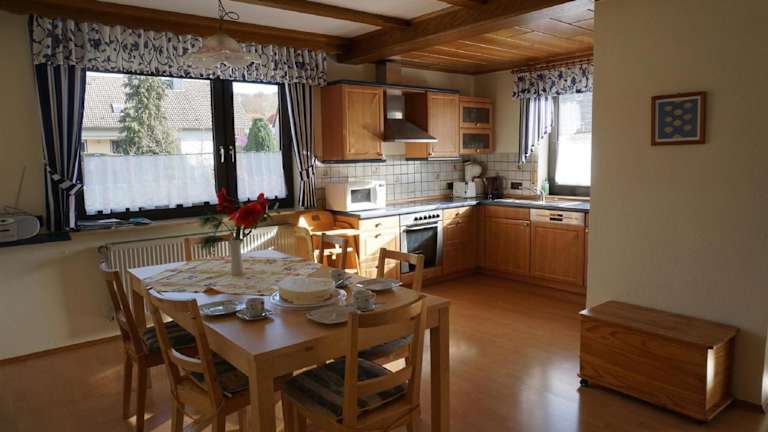 Im Rhönbauernhof Spiegel können Sie Ihre Mahlzeiten selbst zubereiten, da das Ferienhaus über eine voll ausgestattete Küche verfügt. Alternativ können Sie auch den Grillplatz nutzen und ein köstliches Barbecue im Freien genießen. In der Umgebung finden Sie auch verschiedene Restaurants, in denen Sie regionale Spezialitäten probieren können.
