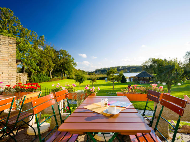 Im Seeblick können Sie ein reichhaltiges Frühstücksbuffet genießen, das einen guten Start in den Tag bietet. Am Abend werden Ihnen viele kreative Gerichte aus der Region Mecklenburg serviert. Am Nachmittag können Sie hausgemachte Kuchen probieren. Bei schönem Wetter lädt die Außenterrasse mit Blick auf den grünen Garten des Seeblicks zum Entspannen bei einem kühlen Getränk ein.
