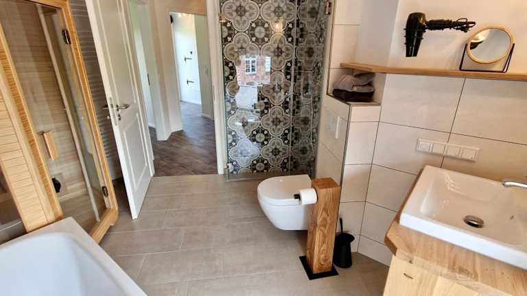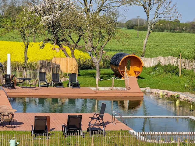 Die Ferienwohnung „Appelboom“ - Hof Mühlenkoppel bietet Übernachtungsmöglichkeiten in einer komfortablen Unterkunft mit Zugang zu einem privaten Pool und einer Sauna. Check-in ist ab 16:00 Uhr und bis Mitternacht möglich, während der Check-out zwischen Mitternacht und 10:00 Uhr erfolgt. Haustiere sind auf Anfrage gestattet.