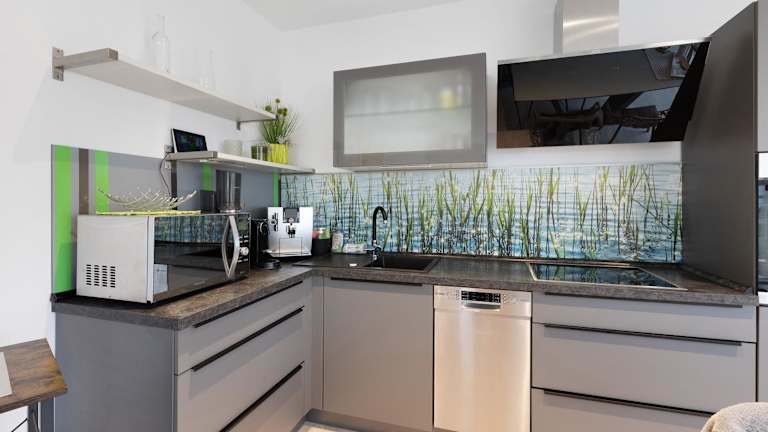 Die Ferienwohnung umfasst zwei Schlafzimmer, ein Badezimmer, eine voll ausgestattete Küche und eine Veranda mit Blick auf den See. Zur Ausstattung gehören Bettwäsche, Handtücher sowie ein TV mit Kabelkanälen. Zudem ist die Unterkunft rollstuhlgerecht und bietet Gartenmöbel.