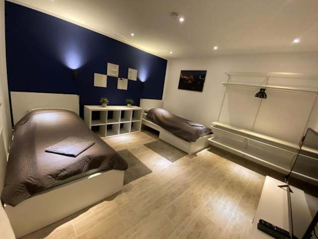 Die Ferienwohnung befindet sich in Duisburg, 7,9 km vom Rathaus Duisburg entfernt. In der Nähe sind auch die Salvatorkirche (8 km) und das Casino Duisburg (8,6 km) zu finden. Der Flughafen Düsseldorf ist 27 km entfernt.