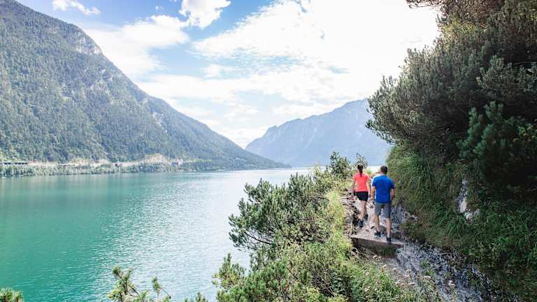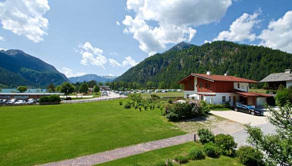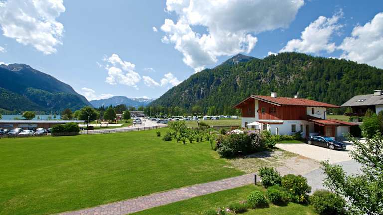 Achenkirch, Tirol, direkt am Strand gelegen, mit Blick auf die Berge.