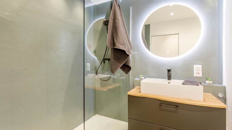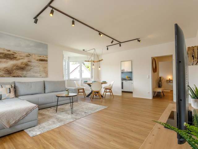 Die Ferienwohnung bietet ein Schlafzimmer und eine Küche, die mit einem Kühlschrank und Geschirrspüler ausgestattet ist. Ein Flachbild-TV und ein Sitzbereich sind ebenfalls vorhanden. Das Badezimmer ist mit einer Dusche ausgestattet. Handtücher und Bettwäsche werden bereitgestellt und nach den Richtlinien der örtlichen Behörden gewaschen.