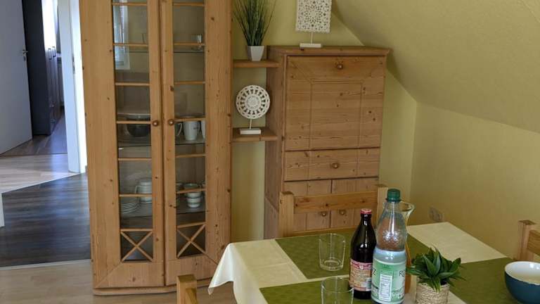 Die Ferienwohnung umfasst ein Schlafzimmer, ein Wohnzimmer und eine voll ausgestattete Küche. Diese ist mit einem Kühlschrank und einer Kaffeemaschine ausgestattet. Des Weiteren gibt es ein Badezimmer mit Badewanne und kostenlosen Pflegeprodukten. Handtücher und Bettwäsche werden bereitgestellt.