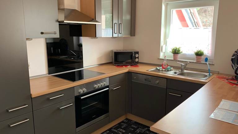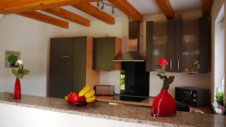 Die Ferienwohnung ist mit einer voll ausgestatteten Küche ausgestattet, die unter anderem über einen Kühlschrank und eine Kaffeemaschine verfügt. Eine Verpflegung im herkömmlichen Sinne ist nicht vorgesehen.