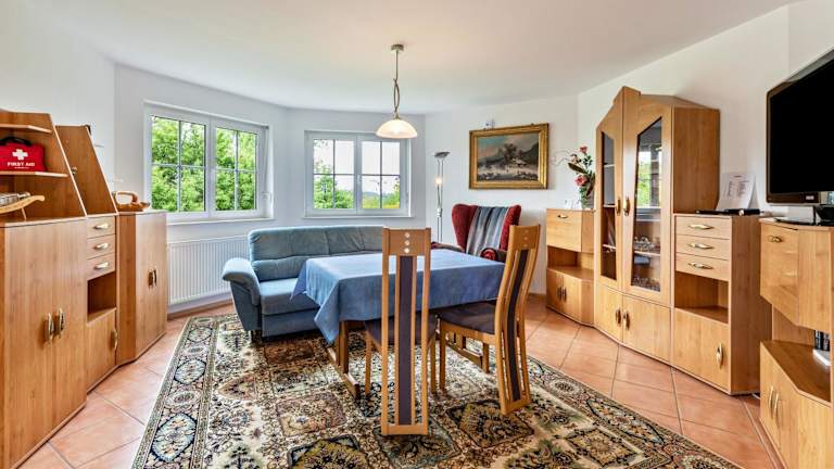 Die Ferienwohnung umfasst ein Schlafzimmer, ein Wohnzimmer sowie eine voll ausgestattete Küche mit Kühlschrank und Kaffeemaschine. Das moderne Badezimmer ist mit einer Badewanne und kostenlosen Pflegeprodukten ausgestattet. Handtücher und Bettwäsche werden zur Verfügung gestellt.