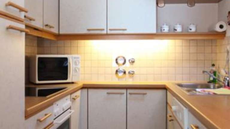 Die Ferienwohnung verfügt über eine Küche, die mit einem Kühlschrank und einem Geschirrspüler ausgestattet ist, was die Selbstversorgung erleichtert. Café- und Teezubehör, einschließlich einer Kaffeemaschine, sind ebenfalls vorhanden.