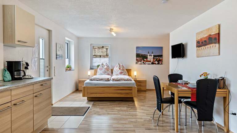 Die Ferienwohnung Alpenblick befindet sich in Gauingen, einem charmanten Ortsteil von Zwiefalten. Hier können Sie die malerische Schönheit der Umgebung genießen und die Alpen in der Ferne bewundern. Entdecken Sie die historische Altstadt von Zwiefalten und besuchen Sie die nahegelegene Stadt Bad Urach, die nur 44 km entfernt ist. Die Umgebung eignet sich auch hervorragend zum Radfahren und bietet zahlreiche Möglichkeiten, die Natur zu erkunden.