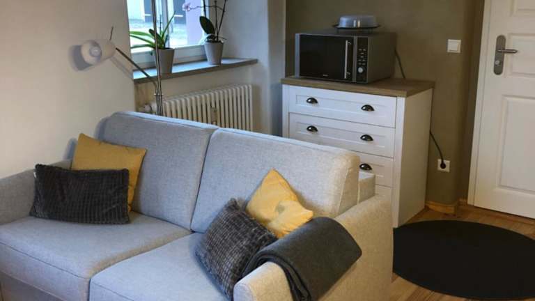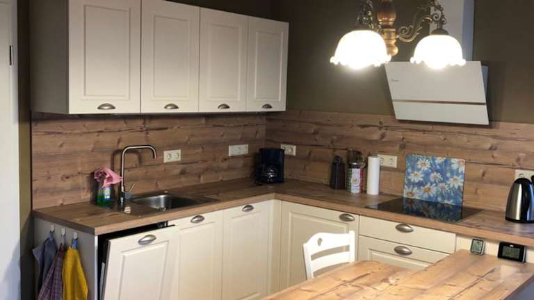 Die Ferienwohnung umfasst ein Schlafzimmer, ein Wohnzimmer und eine voll ausgestattete Küchenzeile, die mit einem Kühlschrank und einer Kaffeemaschine ausgestattet ist. Des Weiteren gibt es ein Badezimmer mit Dusche und Haartrockner. Handtücher und Bettwäsche werden bereitgestellt.