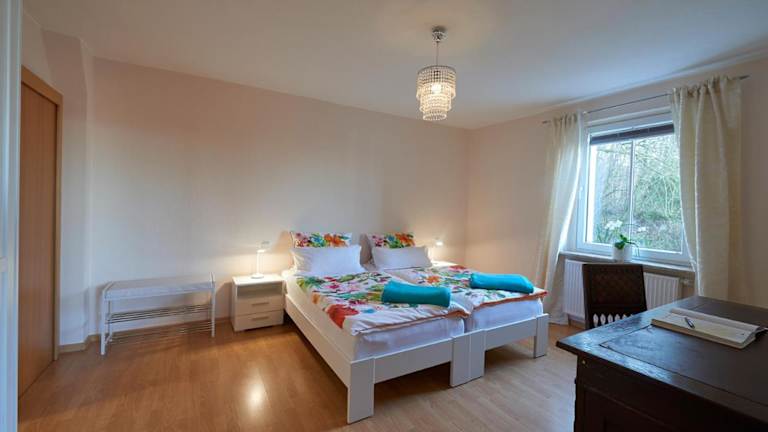 Die Ferienwohnung verfügt über ein gemütliches Schlafzimmer, ein Wohnzimmer mit Flachbild-TV und eine voll ausgestattete Küche mit Kühlschrank und Backofen. Das Badezimmer ist mit einer Dusche ausgestattet. Handtücher und Bettwäsche werden gestellt, so dass Sie sich um nichts kümmern müssen.