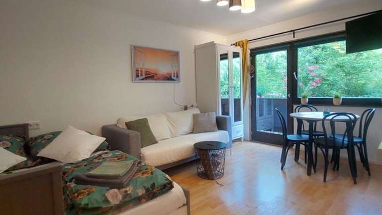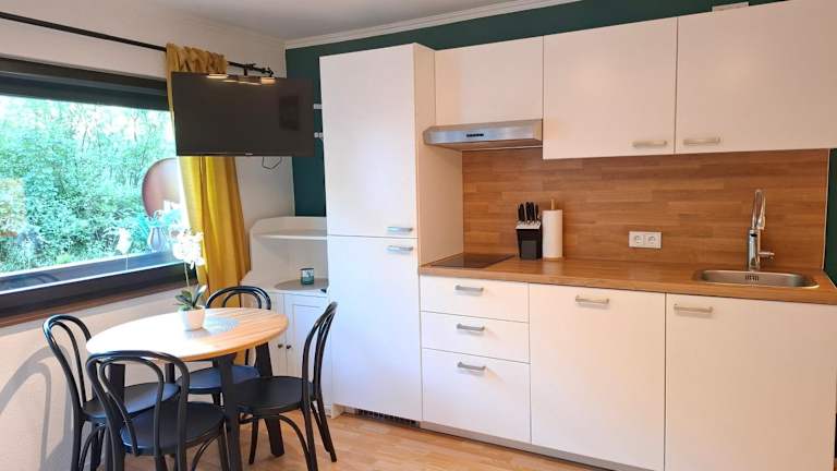 Die Ferienwohnung verfügt über einen Satelliten Flachbild-TV und bietet eine umfassende Küchenausstattung.