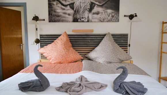 Die Ferienwohnung Am Bollenbach bietet Übernachtungsmöglichkeiten in einem geschmackvoll eingerichteten Dachgeschoss. Die Unterkunft ist privat geführt und erlaubt keine Junggesellen-/Junggesellinnenabschiede oder ähnliche Feiern. Check-in ist ab 15:00 Uhr möglich, und der Check-out sollte bis 10:00 Uhr erfolgen. Der Mindestalter für den Check-in beträgt 18 Jahre.