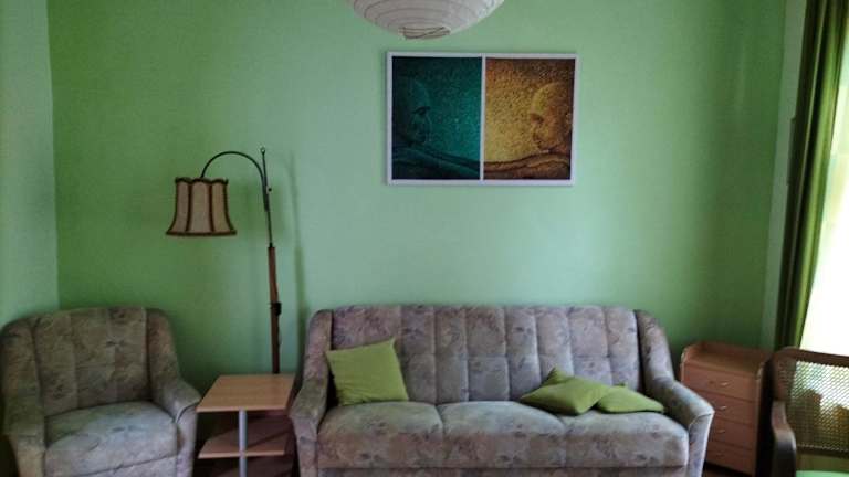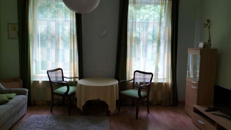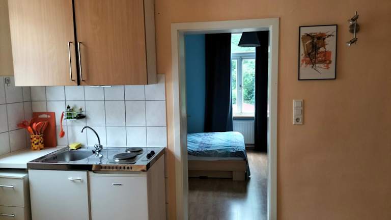 Die Ferienwohnung umfasst ein Schlafzimmer sowie ein Wohnzimmer. Zur Ausstattung gehören ein Satelliten Flachbild-TV und ein Essbereich. Die Küche ist mit einem Kühlschrank ausgestattet. Handtücher und Bettwäsche werden bereitgestellt.
