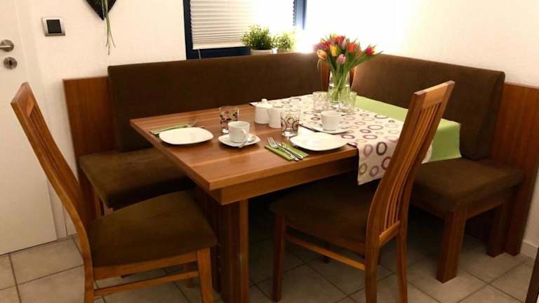 In der Ferienwohnung am Flörbach können Sie Ihre Mahlzeiten bequem selbst zubereiten, da die Küche voll ausgestattet ist. Alternativ finden Sie in der Umgebung verschiedene Restaurants, in denen Sie lokale Spezialitäten genießen können.