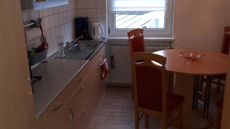 Die Ferienwohnung verfügt über ein Schlafzimmer, ein Wohnzimmer und ein Badezimmer mit Dusche. Zur Ausstattung gehört eine voll ausgestattete Küche, die mit einem Kühlschrank und einer Kaffeemaschine ausgestattet ist. Handtücher und Bettwäsche werden bereitgestellt. Alle öffentlichen und privaten Bereiche sind Nichtraucherzonen.