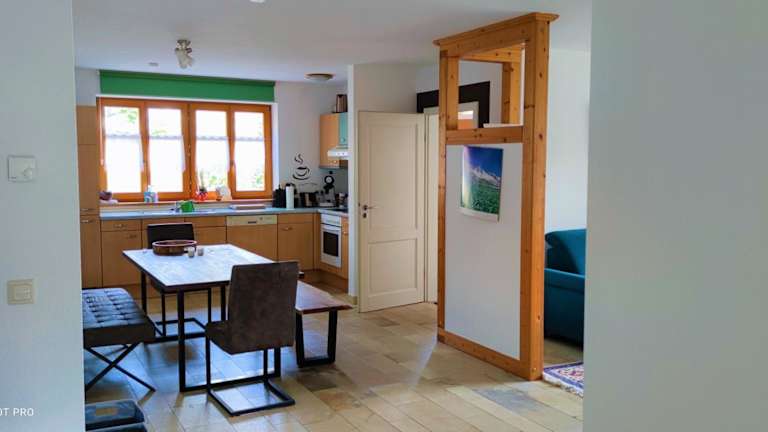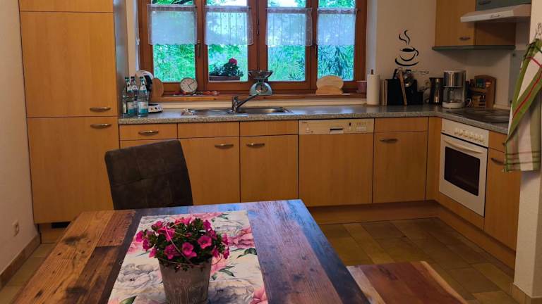 Die Ferienwohnung ist mit einer gut ausgestatteten Küche ausgestattet, die einen Kühlschrank und einen Geschirrspüler umfasst. Es werden keine speziellen Verpflegungsmöglichkeiten erwähnt, jedoch steht eine Kaffeemaschine zur Verfügung.