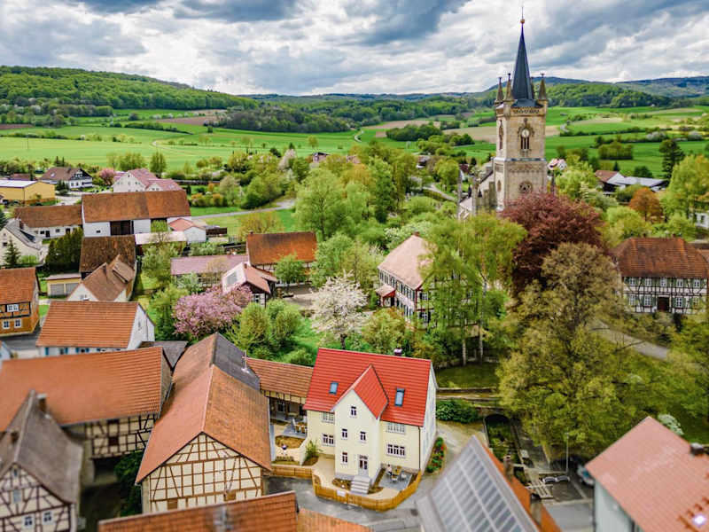 Die Ferienwohnung am Kirchbrunnen liegt in Urspringen, einer Ortschaft in der Region Bayern. In der Nähe befinden sich Sehenswürdigkeiten wie die Kreuzbergschanze (16 km entfernt) und das Schloss Elisabethenburg (33 km entfernt). Der Flughafen Erfurt-Weimar ist in einer Entfernung von 124 km zu erreichen.