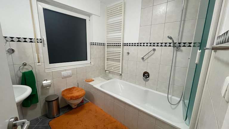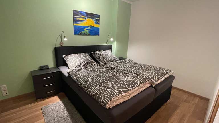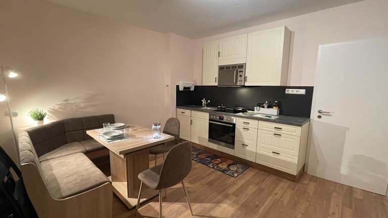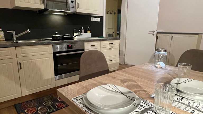Die Ferienwohnung besteht aus einem Schlafzimmer, einem Wohnzimmer und einer voll ausgestatteten Küche, die mit einem Kühlschrank und einer Kaffeemaschine ausgestattet ist. Zusätzlich gibt es ein Badezimmer mit einer Badewanne und einem Haartrockner. Handtücher und Bettwäsche werden bereitgestellt.