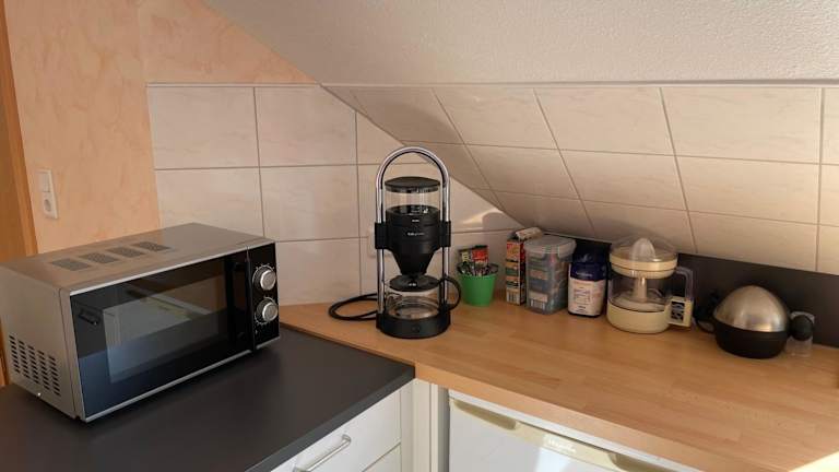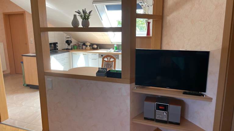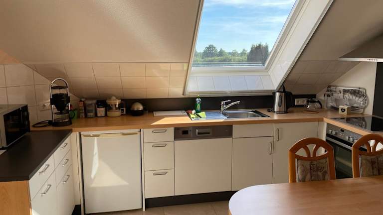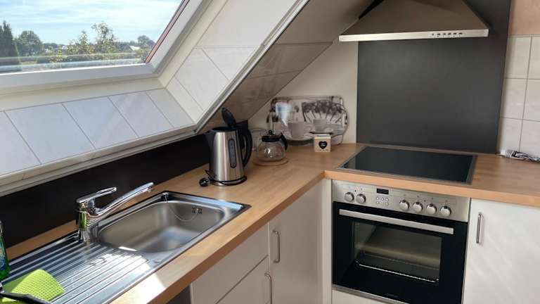 Die Ferienwohnung verfügt über ein Schlafzimmer sowie eine Küchenzeile, die mit einem Kühlschrank und einem Geschirrspüler ausgestattet ist. Das Badezimmer ist mit einer Dusche, einem Haartrockner und einer Waschmaschine ausgestattet. Gästen werden Handtücher und Bettwäsche zur Verfügung gestellt.