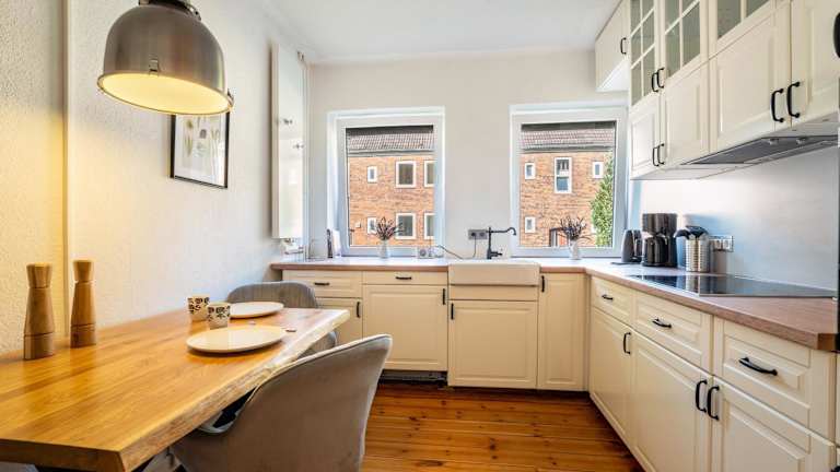 Die Ferienwohnung umfasst ein Schlafzimmer, eine Küche mit Kühlschrank und Geschirrspüler sowie ein Badezimmer mit Dusche und kostenlosen Pflegeprodukten. Handtücher und Bettwäsche werden bereitgestellt. Eine Waschmaschine ist ebenfalls vorhanden.