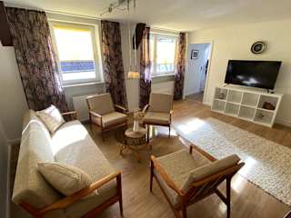 Die Ferienwohnung umfasst zwei Schlafzimmer, ein Wohnzimmer sowie ein Badezimmer mit Dusche und Haartrockner. Annehmlichkeiten wie kostenloses WLAN, ein Flachbild-TV und die Bereitstellung von Handtüchern und Bettwäsche sind ebenfalls vorhanden. Zudem steht ein kostenloser Privatparkplatz zur Verfügung.