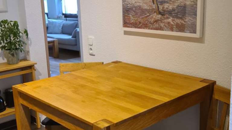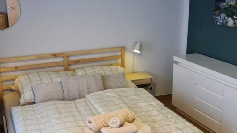 Die Ferienwohnung umfasst 1 Schlafzimmer, ein Wohnzimmer, eine voll ausgestattete Küche mit Kühlschrank und Kaffeemaschine sowie 1 Badezimmer mit Dusche und Haartrockner. Handtücher und Bettwäsche werden bereitgestellt.