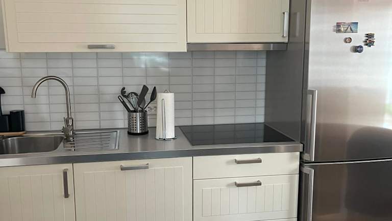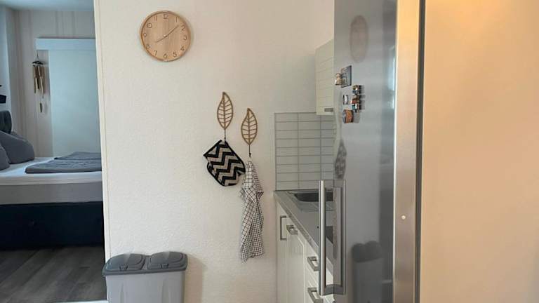 Die Ferienwohnung ist mit einer Küche ausgestattet, die einen Kühlschrank, Geschirrspüler und Herdplatte sowie eine Kaffeemaschine umfasst. Es sind keine Informationen über Verpflegungsmöglichkeiten wie Restaurants oder Frühstück vorhanden.