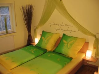 Wohn/Essbereich Das große, geräumige Wohnzimmer ist ausgestattet mit einem 3-Sitzer Schlafsofa (2 Personen), einem Fernseher mit Sat-Receiver und auf Wunsch ein WLAN für Ihr Notebook. Für Ihre Kinder und die ganze Familie sind viele Spiele vorhanden. Sie selbst können sich zum Schmökern aus dem Bücherregal bedienen. Der Esstisch bietet Platz für 6 Personen. Ein Kinderhochstuhl ist vorhanden. Küche Die im Essbereich integrierte Küche ist voll ausgestattet mit Herd und Backofen, Kühlschrank mit Eisfach, Mikrowelle, Kaffeemaschine, Wasserkocher, Toaster, etc. Schlafzimmer Das angrenzende Schlafzimmer bietet ein gemütliches Doppelbett (1,80x2,00m), ein Etagenbett und einen großen geräumigen Kleiderschrank. Bettwäsche ist selbstverständlich vorhanden. Bad Im Bad befindet sich die Toilette, eine Badewanne mit Duschvorrichtung und ein Waschbecken. Handtücher sind vorhanden, ebenso ein "Kindertöpfchen" Extras Ein zustellbares Babybett oder Bettgitter, Wickelauflage, Fläschchenwärmer und Kinderhochstuhl ermöglichen Familien mit Baby einen entspannten Urlaub ohne viel Gepäck.