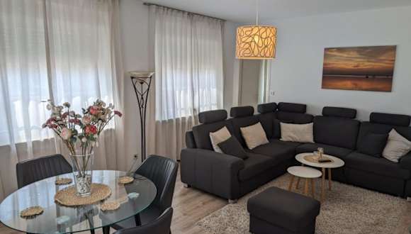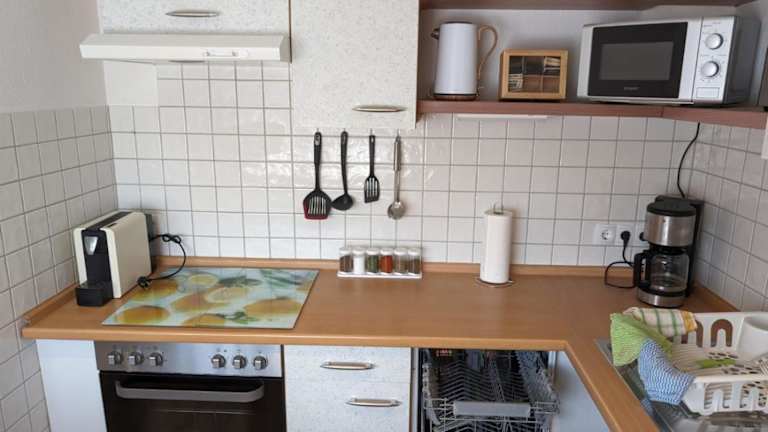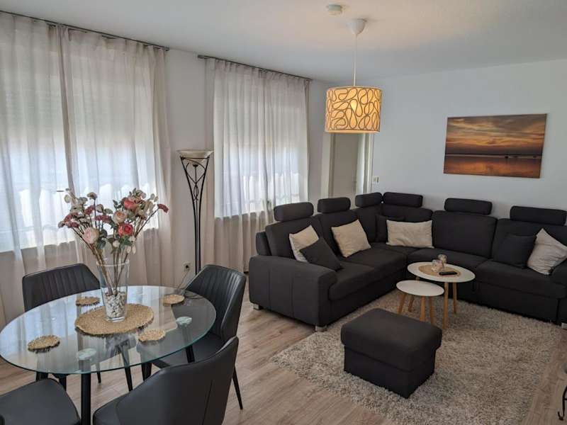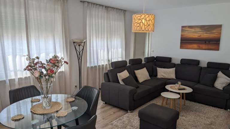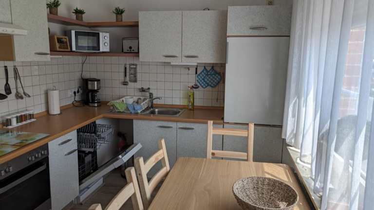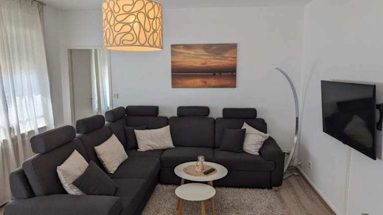 Die Ferienwohnung umfasst 2 Schlafzimmer, eine Küche mit Kühlschrank und Geschirrspüler, einen Flachbild-TV, einen Sitzbereich sowie ein Badezimmer, das mit einer Badewanne ausgestattet ist. Handtücher und Bettwäsche werden bereitgestellt.