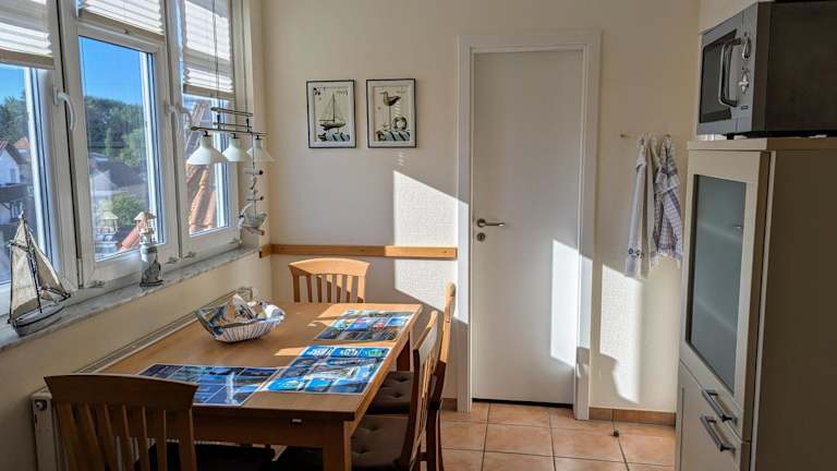 Die Ferienwohnung An de Waterkant Wiek befindet sich in Wiek auf Rügen, in unmittelbarer Nähe zum Hafen. Die Unterkunft liegt direkt am Strand und bietet Zugang zu bemerkenswerten Sehenswürdigkeiten wie Kap Arkona (13 km entfernt) und Naturbühne Ralswiek (37 km entfernt). Der Nationalpark Jasmund, bekannt für seine atemberaubenden Kreidefelsen, ist 29 km entfernt.