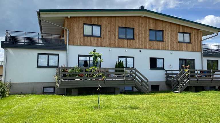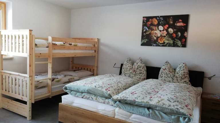 Die Ferienwohnung an der Reitanlage bietet kostenloses WLAN und einen herrlichen Bergblick. Zur Ausstattung gehört ein Garten sowie ein kostenloser Privatparkplatz.
