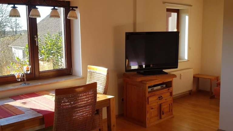 Die Ferienwohnung beinhaltet ein Schlafzimmer, eine Küche ausgestattet mit Kühlschrank und Geschirrspüler, ein Flachbild-TV, sowie einen Sitzbereich. Es gibt ein Badezimmer mit Dusche. Handtücher und Bettwäsche werden bereitgestellt.