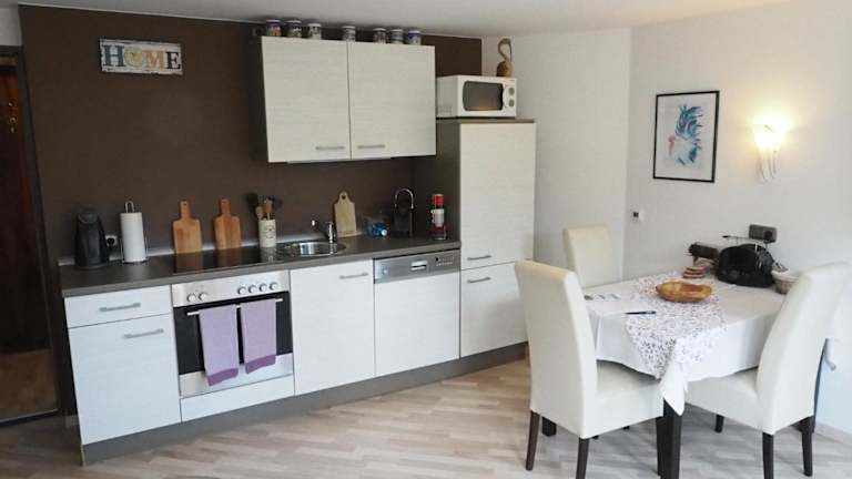Die Ferienwohnung verfügt über ein Schlafzimmer und bietet einen Flachbild-TV mit Satellitenkanälen. Die gut ausgestattete Küche enthält einen Kühlschrank und einen Geschirrspüler. Ein Badezimmer mit Dusche ist ebenfalls vorhanden. Handtücher und Bettwäsche werden bereitgestellt.