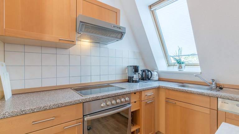 Die Ferienwohnung verfügt über zwei Schlafzimmer, eine gut ausgestattete Küche mit Kühlschrank und Geschirrspüler sowie ein Badezimmer mit Dusche und Haartrockner. Zur Unterhaltung stehen ein Flachbild-TV und ein CD-Player zur Verfügung.