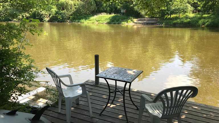 Die Ferienwohnung umfasst zwei Schlafzimmer, ein Wohnzimmer und zwei Badezimmer mit Dusche. Eine gut ausgestattete Küche mit Kühlschrank und Geschirrspüler sowie eine Terrasse mit Flussblick sind ebenfalls vorhanden. Handtücher und Bettwäsche werden bereitgestellt.
