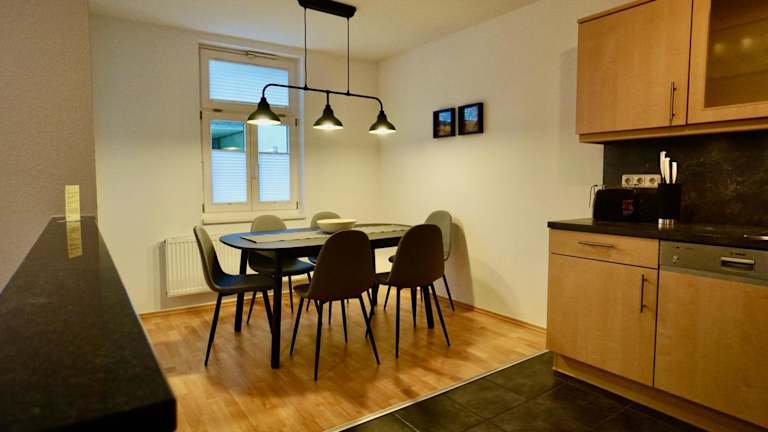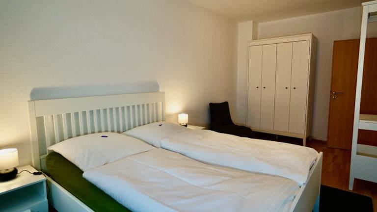 Die Ferienwohnung ist mit zwei Schlafzimmern, einer Küche ausgestattet mit Kühlschrank und Geschirrspüler, einem Flachbild-TV, einem Sitzbereich sowie einem Badezimmer mit Dusche ausgestattet. Handtücher und Bettwäsche werden zur Verfügung gestellt.