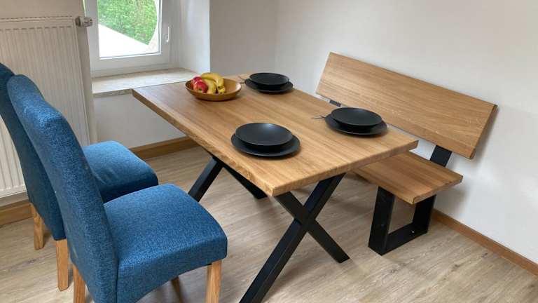 Die Ferienwohnung umfasst 2 Schlafzimmer, ein Wohnzimmer, eine voll ausgestattete Küche mit Kühlschrank und Kaffeemaschine sowie 1 Badezimmer mit Badewanne. Handtücher und Bettwäsche werden bereitgestellt.