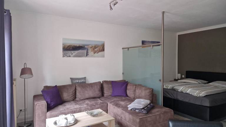 Die Ferienwohnung Baltrum bietet ein gemütliches Apartment mit einem Schlafzimmer, einem Wohnzimmer, einer gut ausgestatteten Küche und einem Badezimmer. Das Apartment verfügt über eine Terrasse, von der aus Sie den Blick auf den Garten genießen können. Zur Ausstattung gehören ein Flachbild-TV, Handtücher und Bettwäsche sind gegen Aufpreis erhältlich.