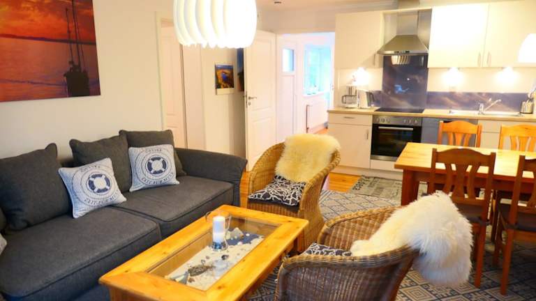 Die Ferienwohnung Bambuswald Ferienhof Geltinger Bucht befindet sich in Koppelheck, Schleswig-Holstein, direkt am Strand und in der Nähe von Freizeitmöglichkeiten wie Radfahren und Wandern.