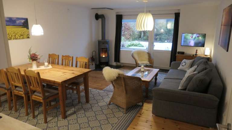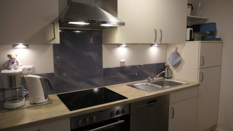 Die Ferienwohnung verfügt über drei Schlafzimmer und ist mit einem Flachbild-TV und einer voll ausgestatteten Küche ausgestattet. Zur Küchenausstattung gehören ein Kühlschrank, Geschirrspüler, Waschmaschine, Ofen und Herdplatte. Handtücher und Bettwäsche werden zur Verfügung gestellt.