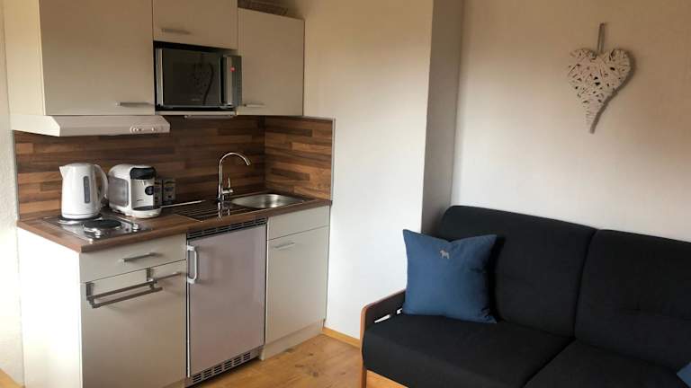 Die Ferienwohnung verfügt über ein Schlafzimmer, ein Wohnzimmer und eine voll ausgestattete Küche mit Kühlschrank und Kaffeemaschine. Das Apartment ist mit einem Flachbild-TV und kostenfreiem WLAN ausgestattet. Das Badezimmer ist mit einer Dusche und einem Haartrockner ausgestattet. Handtücher und Bettwäsche werden gestellt, um Ihren Aufenthalt so angenehm wie möglich zu gestalten.