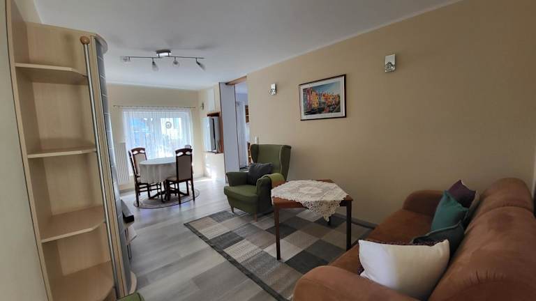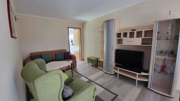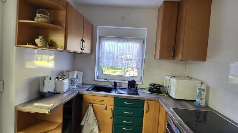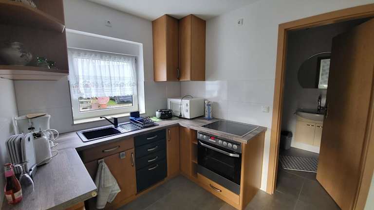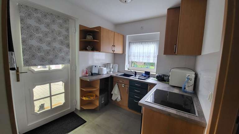 Die Ferienwohnung besteht aus einem Schlafzimmer, einem Wohnzimmer und einer voll ausgestatteten Küchenzeile, die mit einem Kühlschrank und einer Kaffeemaschine ausgestattet ist. Zudem steht ein Badezimmer mit einer Dusche zur Verfügung. Handtücher und Bettwäsche werden bereitgestellt.