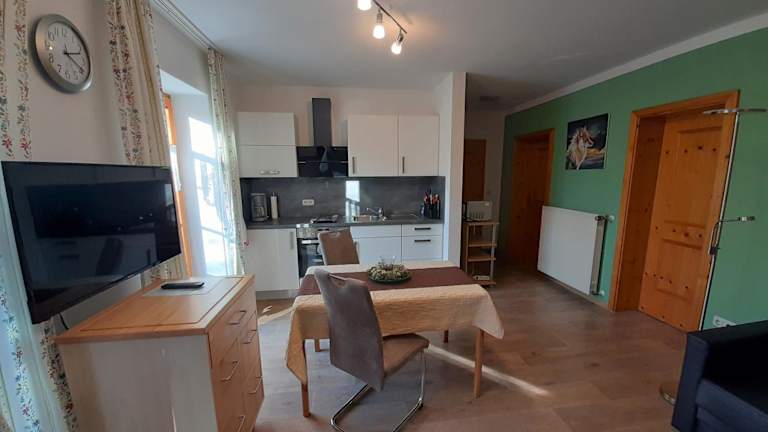 Die Ferienwohnung Beate Zierer bietet ein gemütliches Apartment mit 1 Schlafzimmer, einem Wohnzimmer und einer Terrasse mit Blick auf den Garten. Das Apartment ist mit einem Flachbild-Sat-TV und einer voll ausgestatteten Küche ausgestattet. Das Badezimmer verfügt über eine Dusche und eine Badewanne. Handtücher und Bettwäsche werden gestellt, um Ihren Aufenthalt so angenehm wie möglich zu gestalten.
