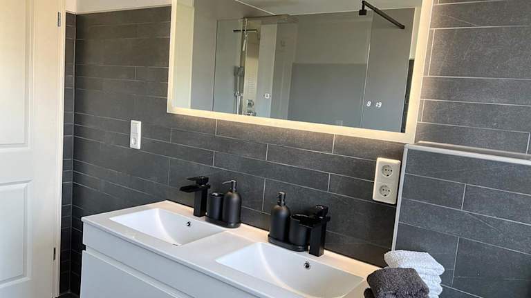 Die Ferienwohnung verfügt über 3 Schlafzimmer, ein Wohnzimmer und eine voll ausgestattete Küche, die mit einem Kühlschrank und einer Kaffeemaschine ausgestattet ist. Das Badezimmer ist mit einer Dusche und einem Haartrockner ausgestattet. Handtücher und Bettwäsche werden bereitgestellt.